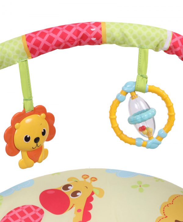 • Barre de jeux amovible avec 2 jouets suspendus