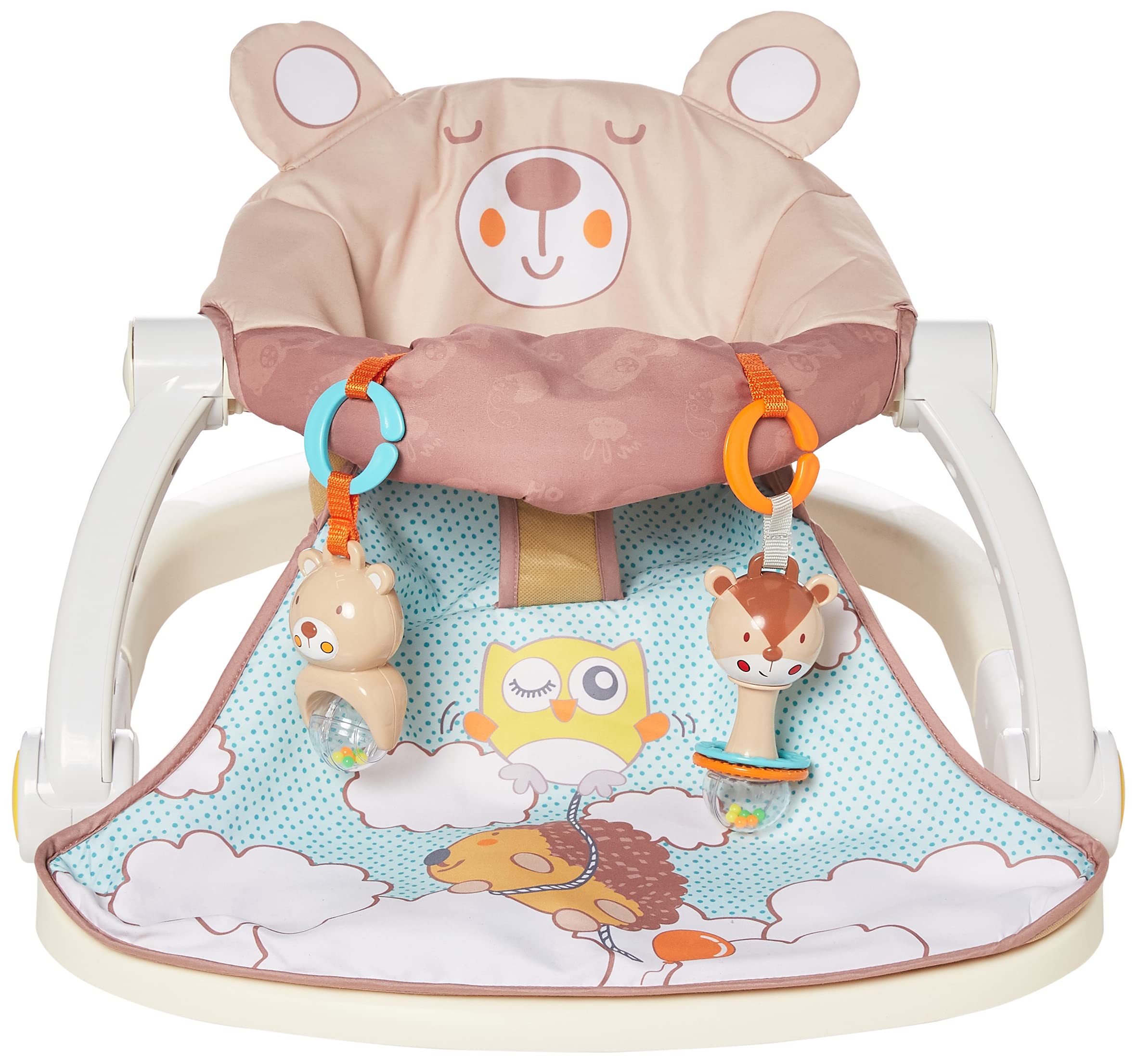 - Le siège offre un support droit avec une base large et robuste pour permettre au bébé de s’asseoir et d’interagir avec son environnement.