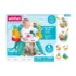 - Les modules d’activités comprennent un oiseau qui tourne, un lanceur de balles, une grande roue, un miroir pour bébé, des toupies coulissantes et un hochet grenouille détachable.