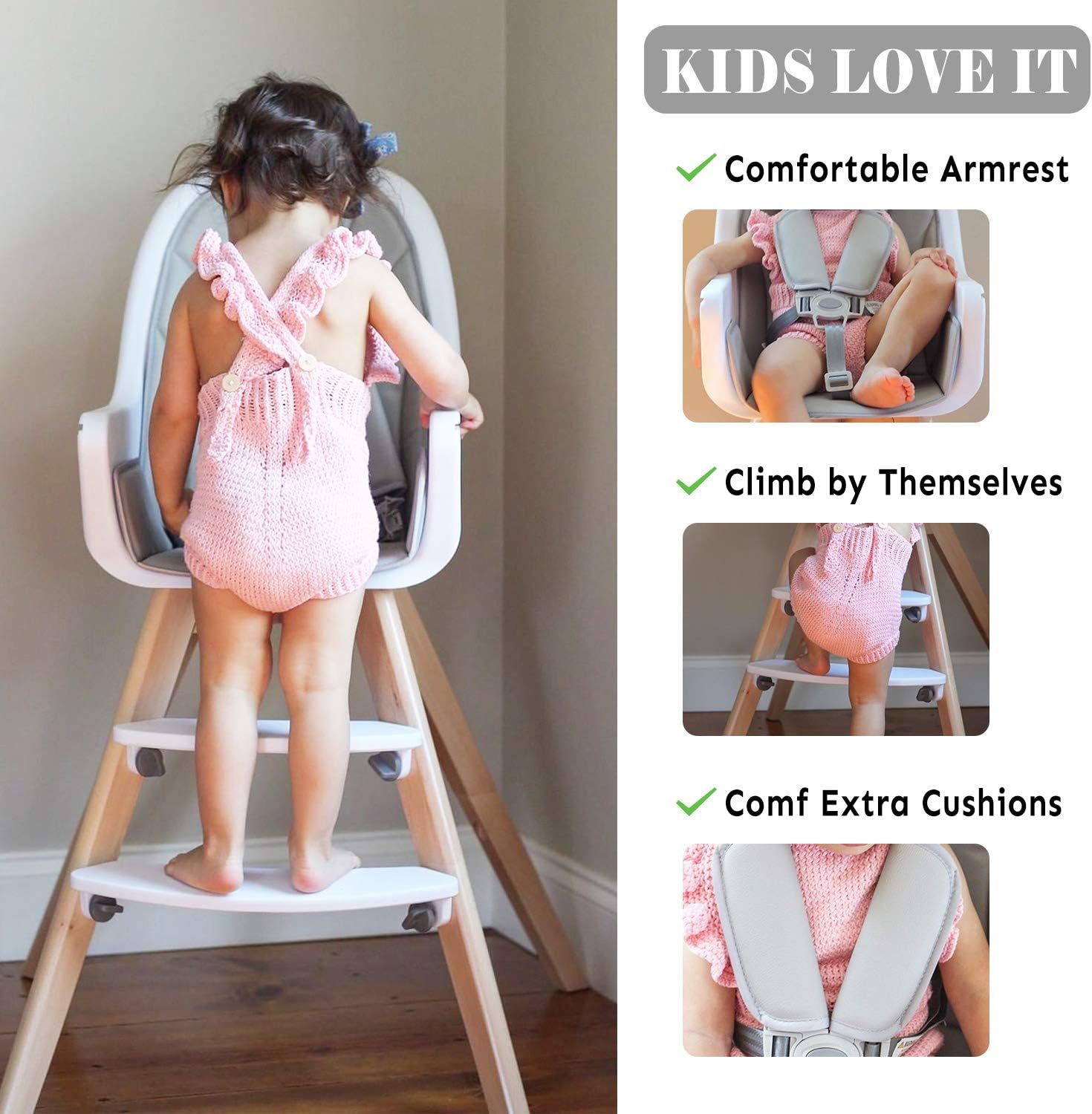 Offrez à votre bébé confort, sécurité et élégance avec cette chaise haute 3en1 en bois.