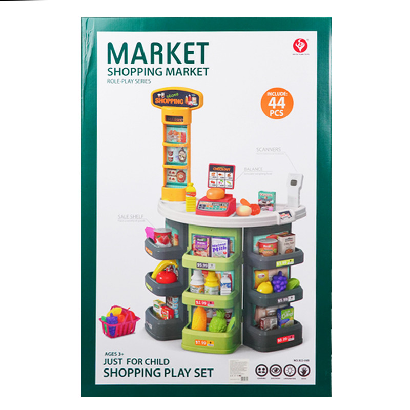 Ensemble de Jeu de Supermarché – Age recommandé : 3 ans+ – Sexe recommandé : Unisexe – Matière : Plastique – Nombre de pièces : 44 – Coffret avec lumières et sons, supermarché avec caisse enregistreuse – Ce jeu éducatif de supermarché est extrêmement réaliste et aide les plus petits à vivre l’activité d’achat dans les moindres détails – L’ensemble fonctionne avec 2 piles AA pour la caisse enregistreuse et 1 pile AAA – Dimensions : 51 x 27 x 78 cm – Couleur : Multi couleur