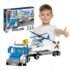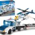 - Le kit comprend un camion de police avec une remorque et un hélicoptère.
