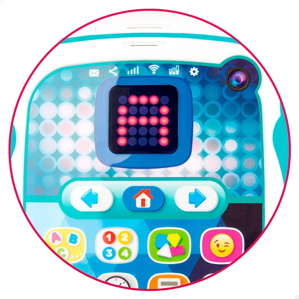 - Écran : Elle est équipée d’un écran LED qui affiche les lettres, les chiffres et les formes pour aider l’enfant à associer ce qu’il apprend de manière visuelle.
