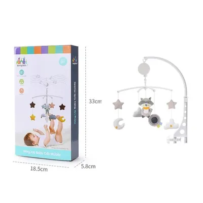 - Les jouets suspendus (raton laveur, lune, étoiles, nuages) tournent à 360° pour stimuler visuellement le bébé.