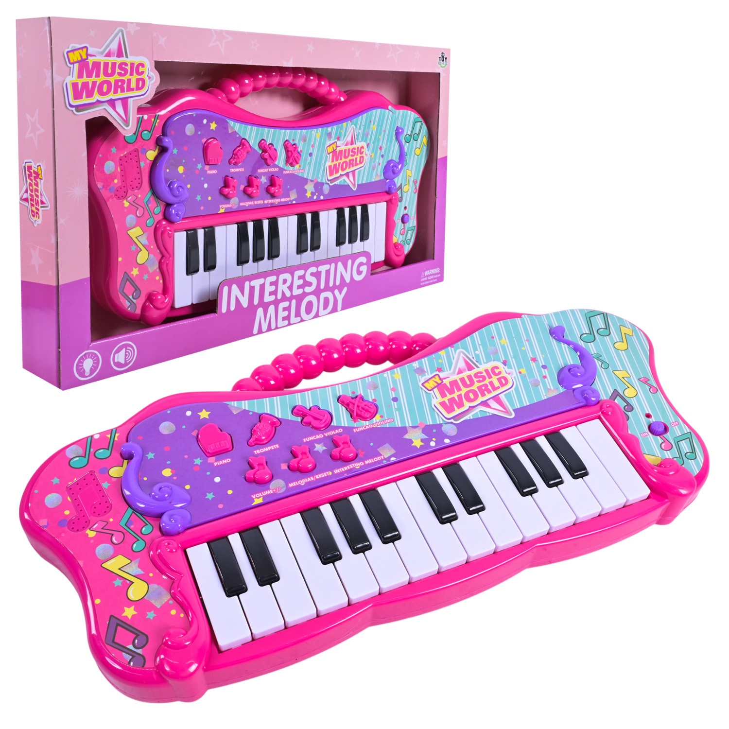 - C’est un piano électronique coloré avec des touches réalistes et des boutons musicaux.