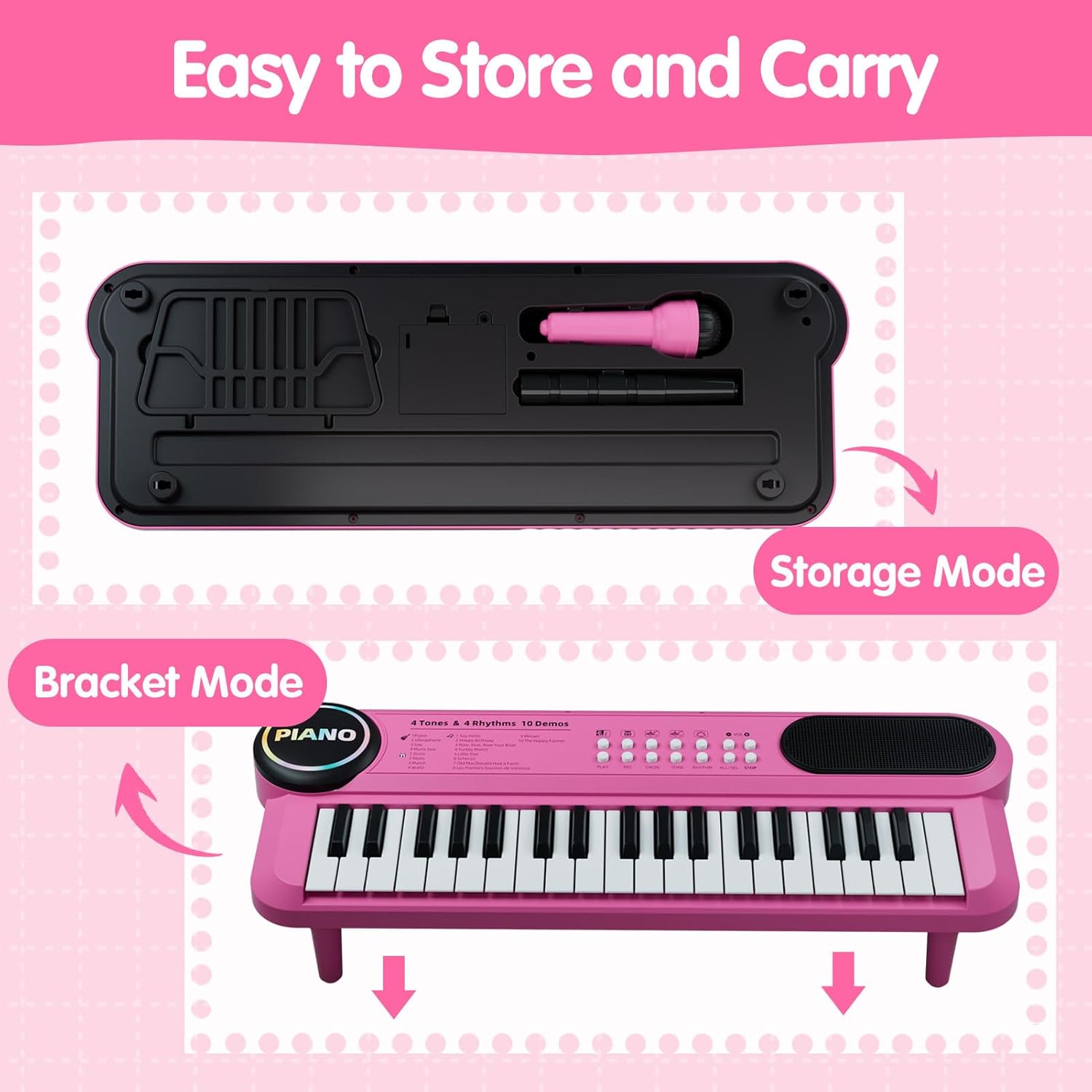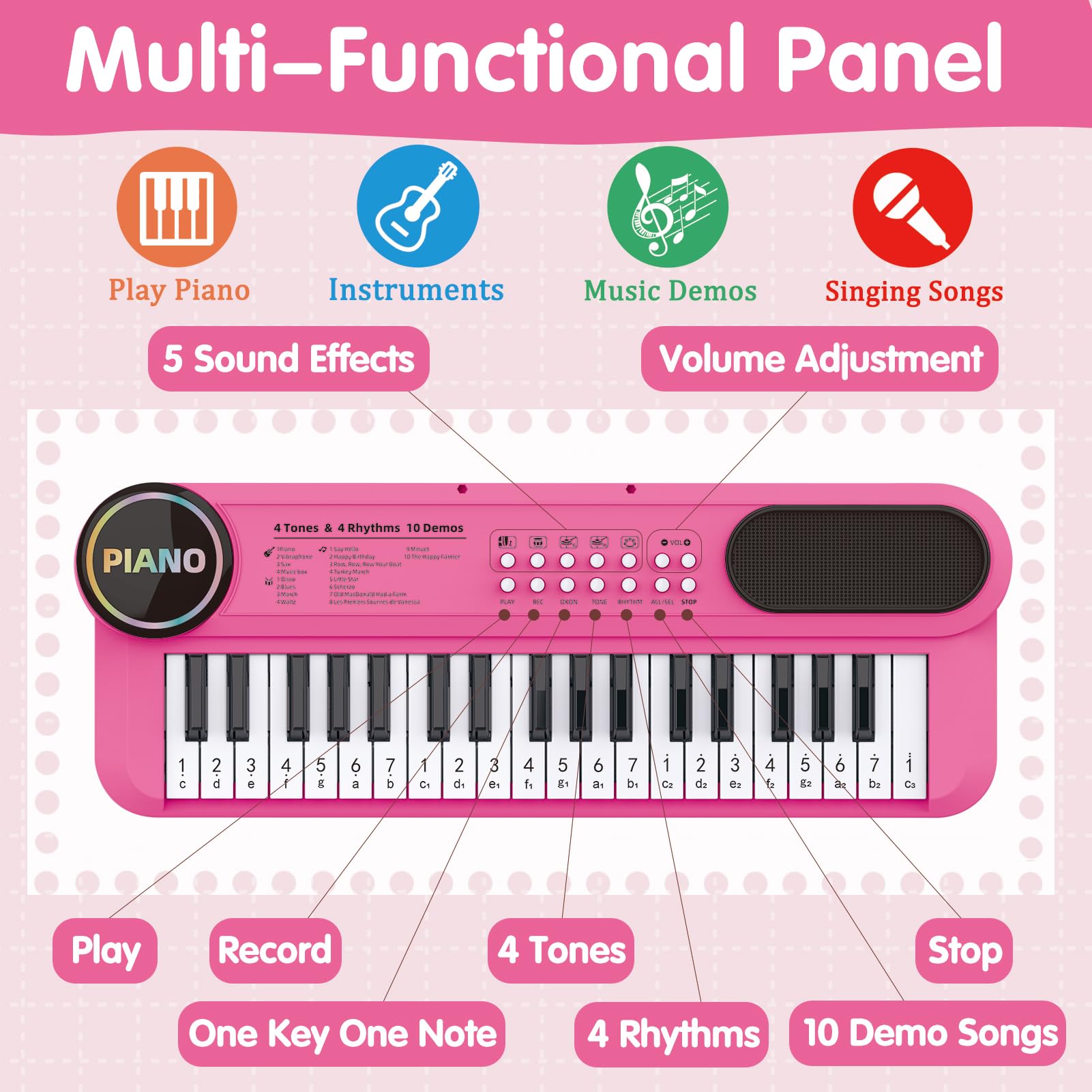 Grâce à ses 37 touches, ses sons variés et son microphone, votre enfant peut jouer, chanter et s’amuser tout en apprenant 🎶