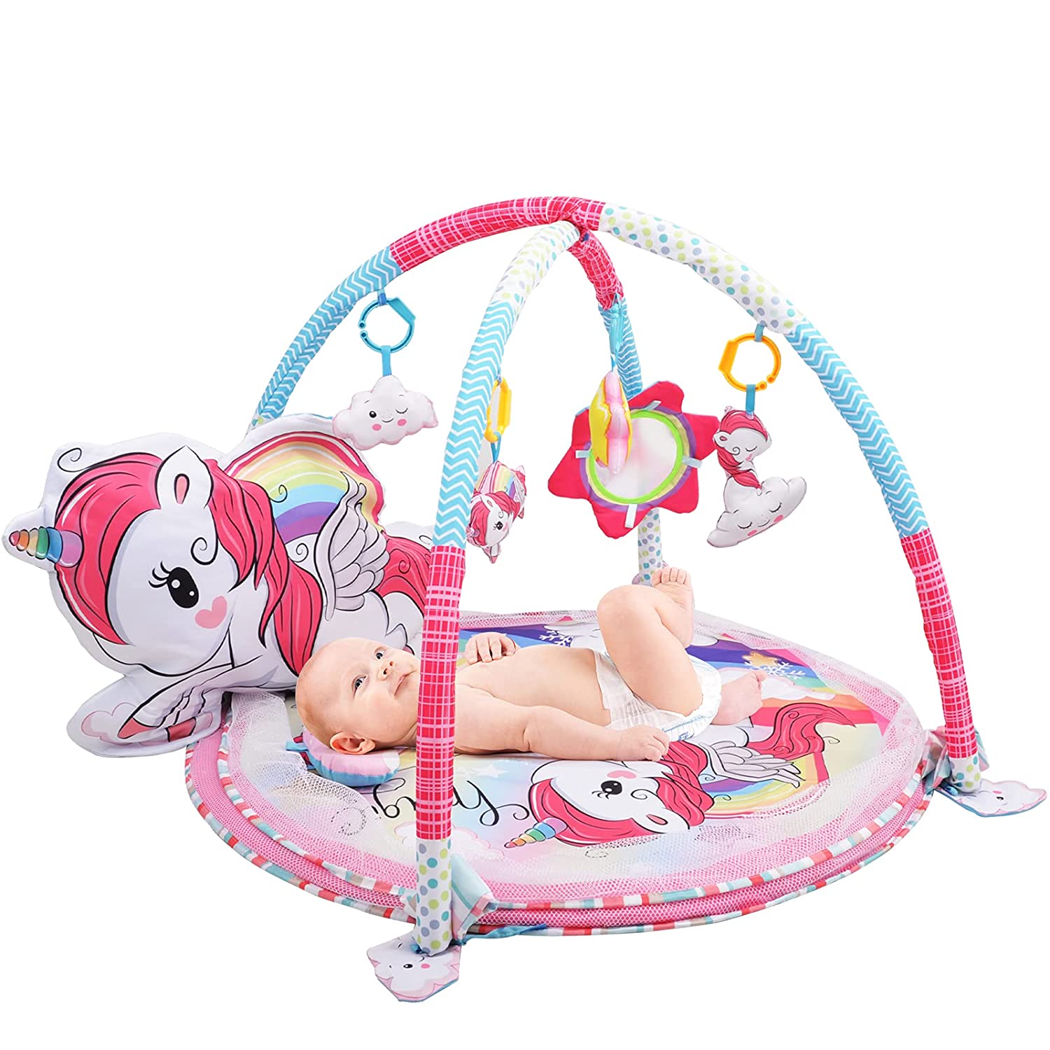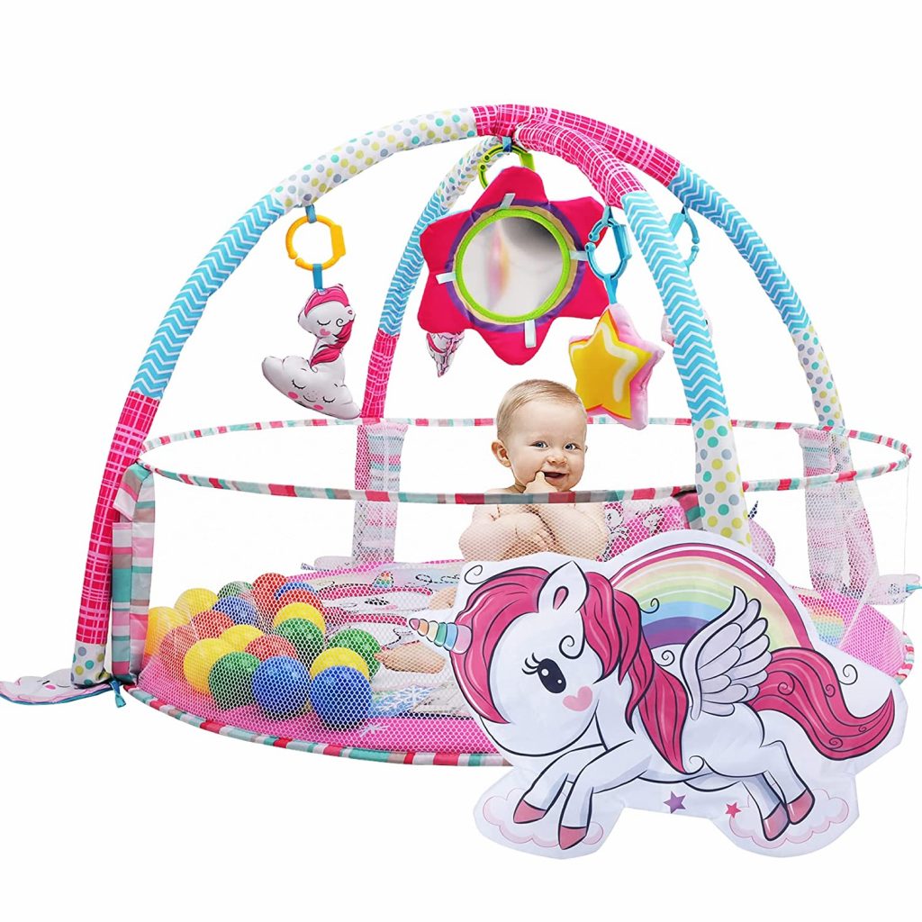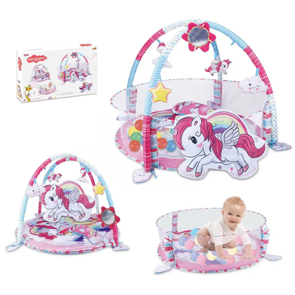 Plongez votre tout-petit dans un univers magique avec notre Tapis d’éveil Licorne XXL . Idéal pour accompagner chaque étape de croissance, il offre un large espace confortable, parfait pour le temps sur le ventre. Grâce à ses jouets sensoriels amovibles et à son coussin en forme de licorne, bébé découvre, joue et se détend en toute sécurité.