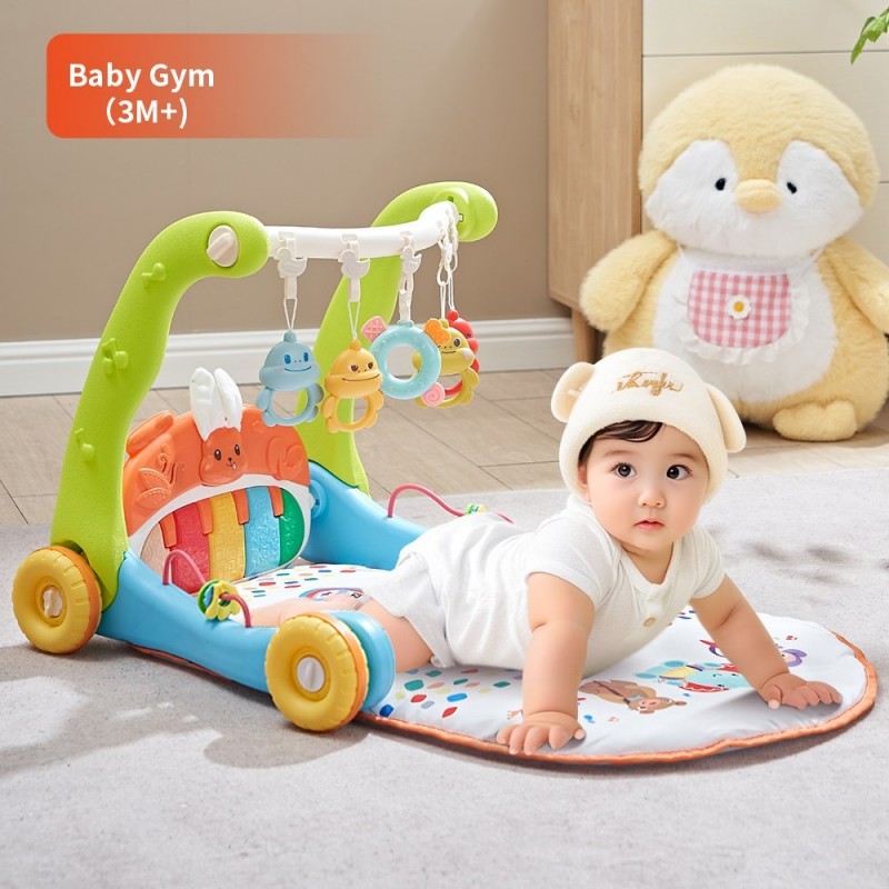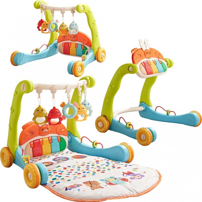 - Il combine les fonctions de tapis de jeu (allongé pour jouer) et de trotteur (assis pour jouer et se lever pour marcher).