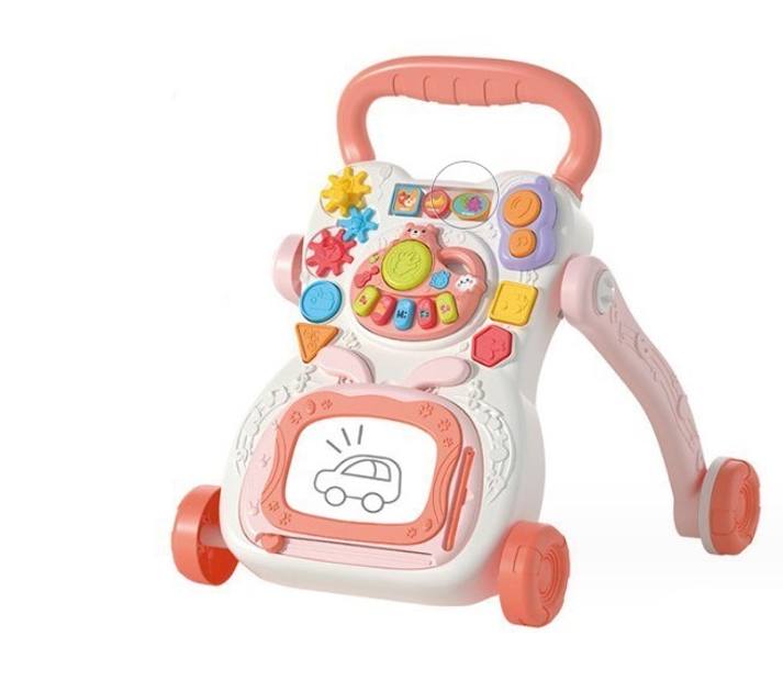 Porteur & Aide à la marche multifonction, conçu avec une structure stable pour accompagner bébé dans ses premiers pas. Réglable en hauteur et en vitesse, il intègre un tableau de dessin éducatif, des lumières et de la musique pour stimuler l’éveil, la motricité et la créativité.